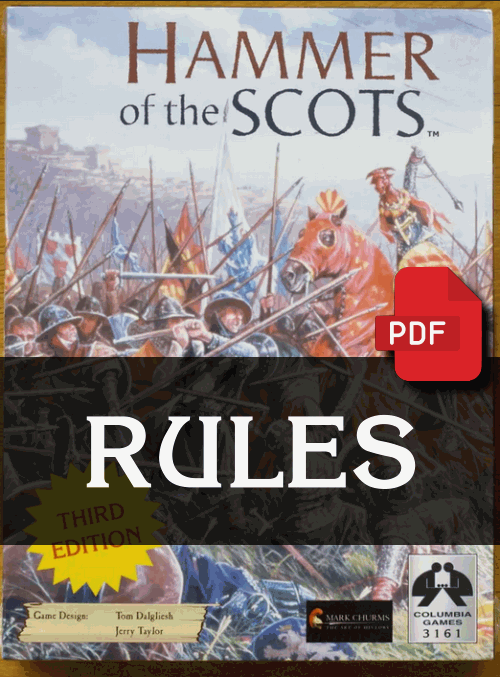 Hammer of the Scots is a medieval block wargame that recreates the Wars of Scottish Independence (1297–1314). Players command the armies of England or Scotland and fight to determine the future of the kingdom; English domination or Scottish freedom. Historical leaders such as William Wallace, Robert the Bruce, and Edward I influence strategy and the course of the war.
