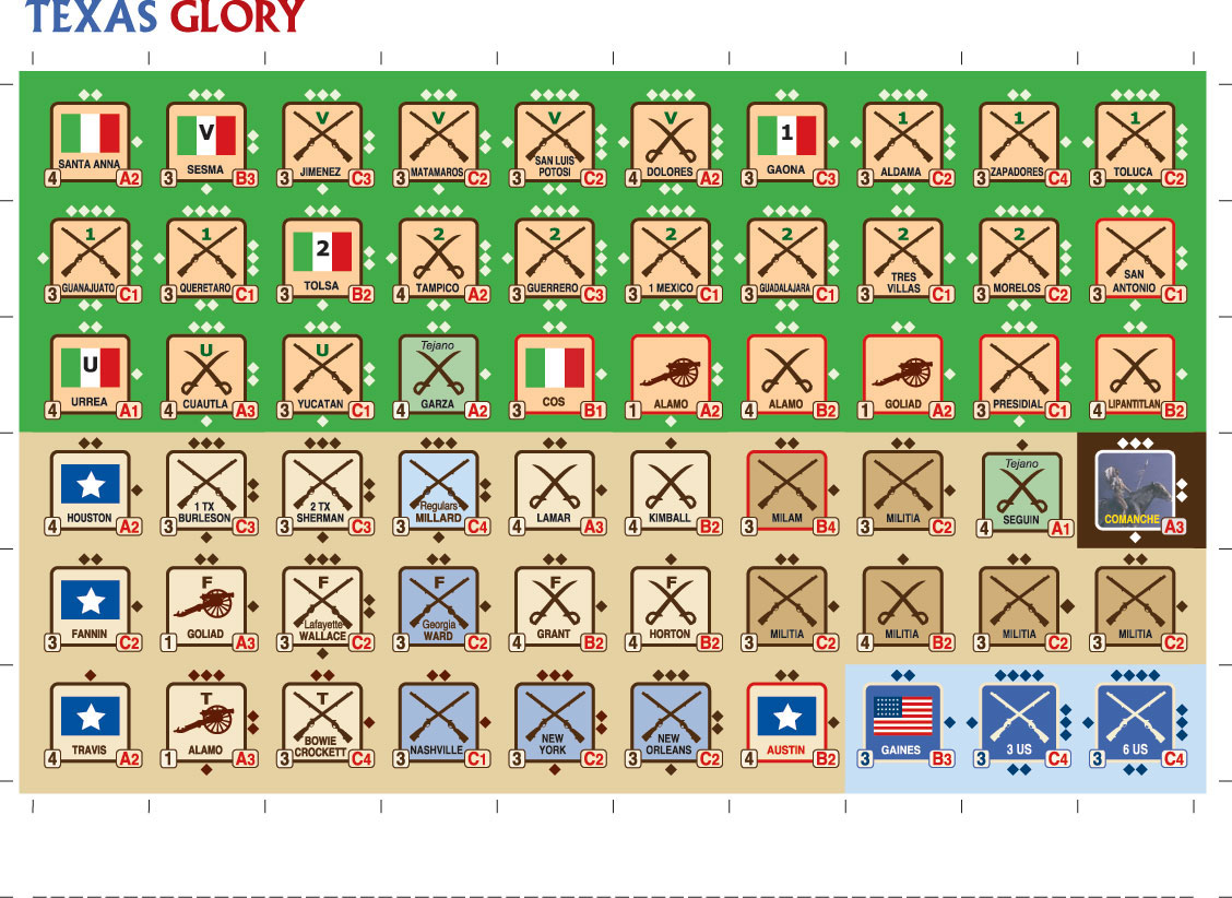 Texas Glory is a strategy wargame that brings this exciting period in history to life. Men like Houston, Austin, Crockett, and Bowie play key roles in the Texan struggle to defeat superior Mexican forces with a small but heroic army.